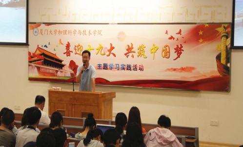 10月16日晚七点,物理科学与技术学院本科生“喜迎十九大,共筑中国梦”第二场主题学习实践活动在物理大楼117报告厅举行。世界杯(中国)党委副书记郑诚明老师、团委副书记陈洪老师、兼职辅导员郑美颖以及2016级全体本科生参加了此次学习活动。