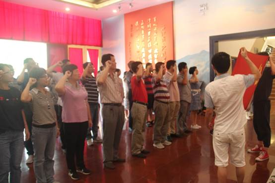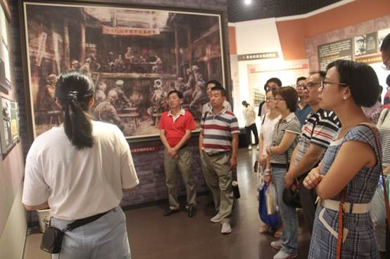 21日上午,一行人首先来到位于江西省修水县的秋收起义纪念馆。秋收起义是我党的一次重要武装起义,具有重要历史意义。一进场馆,首先映入眼帘的毛泽东同志的雕像以及党旗。在伟人的注目下,全体党员举起右手、握紧拳头,庄严重温入党誓词。誓词句句铿锵,在场的同志们都心潮澎湃。紧接着,全体党员跟随者讲解员的脚步,通过图片、文字、视频,一点一滴地回顾这段革命的历史。修水是秋收起义的主要策源地。起义前夕,工农革命军的第一面旗帜在修水设计、制作并率先升起。1927年9月9日,驻扎在修水县城的工农革命军第一军第一师师部及所属第一团率先在县城紫花墩举行了气壮山河的誓师大会,打响了秋收起义第一枪。第二次国内革命战斗时期,老一辈无产阶级革命家彭德怀、罗荣桓、何长工、腾代远、萧克、王首道均在修水留下战斗的足迹。
