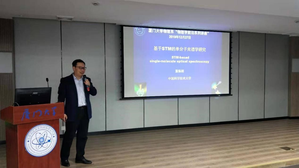 12月27日下午,物理学前沿讲座第92期讲座在物理楼552报告厅举行。中国科学技术大学董振超教授应邀做了物理学前沿讲座“基于STM的单分子光谱学研究”。本次讲座由陈张海教授主持,学院相关的老师和学生参加此次报告会。