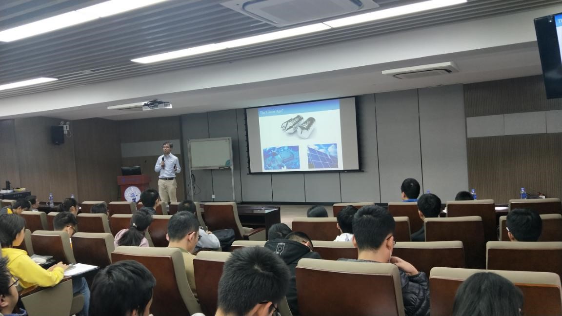 张教授首先介绍了以石墨烯为代表的二维原子晶体已经成为一种可能影响未来科学技术的新型材料,提到了黑磷是一种二维半导体,其优越的材料质量使我们最能够观察到量子反常霍尔效应。随后详细讲解了二维磁性半导体的制备和调控,最后介绍了二维磁性拓扑绝缘体的量子反常霍尔效应的最新研究进展。今年10月份,张教授团队发现了一种新型二维Fe3GeTe2铁磁体,可在室温下实现铁磁转变。通过氧化铝和Fe3GeTe2之间强相互作用,制备得到单层Fe3GeTe2,二维高温超导获新进展,再发Nature!报告结束后,张远波教授详细地回答了师生们的提问。