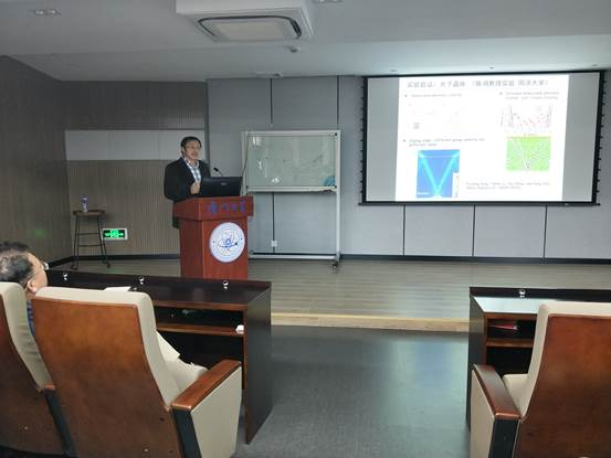 报告会由吴顺情教授主持。吴老师首先介绍了常凯研究员科研情况并致辞热烈欢迎胡伟达研究员作学术报告。常老师指出半导体量子结构不仅具有重要的应用价值,同时也是探索形形色色演生规范场及其相关量子效应的绝佳实验平台,它可以把维度效应(或称纳米结构)、关联效应和能带拓扑性质结合起来,研究由于这些效应相互影响导致的新量子相。在本次报告中,常老师结合其所在的工作讨论在近年来在半导体量子结构中呈现出的形形色色的演生规范场及其诱导的量子效应,例如:自旋轨道耦合效应及其诱导的规范场和自旋霍尔效应;半导体极性界面中的拓扑相;二维材料中应变及光场诱导的规范场及其输运行为;半导体量子阱中库仑关联引致的激子绝缘相;二维体系中人工格点诱导的界面拓扑模式。同学们听了都有所领悟,感到获益匪浅。