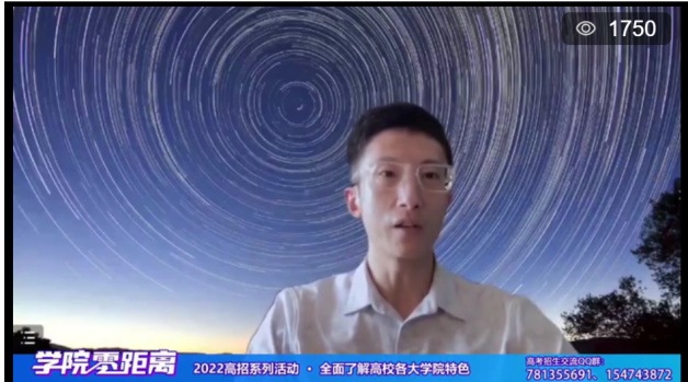 “人类是如何仰望星空的?”“什么是两暗、一黑、三起源?”于浩然教授通过通俗的语言向观众展示了天文学的科普知识和前沿研究动态,并向考生介绍了现代天文系及天文学专业的学习内容,他表示我国天文学已进入高速发展时期,厦门大学天文学系拥有悠久的历史、一流的师资及丰富的科研资源,高质量人才培养模式也源源不断地为社会输出天文学研究和工作专门人才,他也希望未来有更多对天文有兴趣的考生加入厦大天文。
