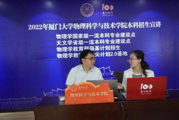 在6月18日开展的“与你相约 学在厦大”厦门大学2022年本科招生线上校园开放日中,物理科学与技术学院特邀物理学系高级工程师、厦门大学教学比赛一等奖获得者高娜、天文学系教授、博士生导师、国家高层次青年人才武剑锋为广大考生、家长“探秘学院”。