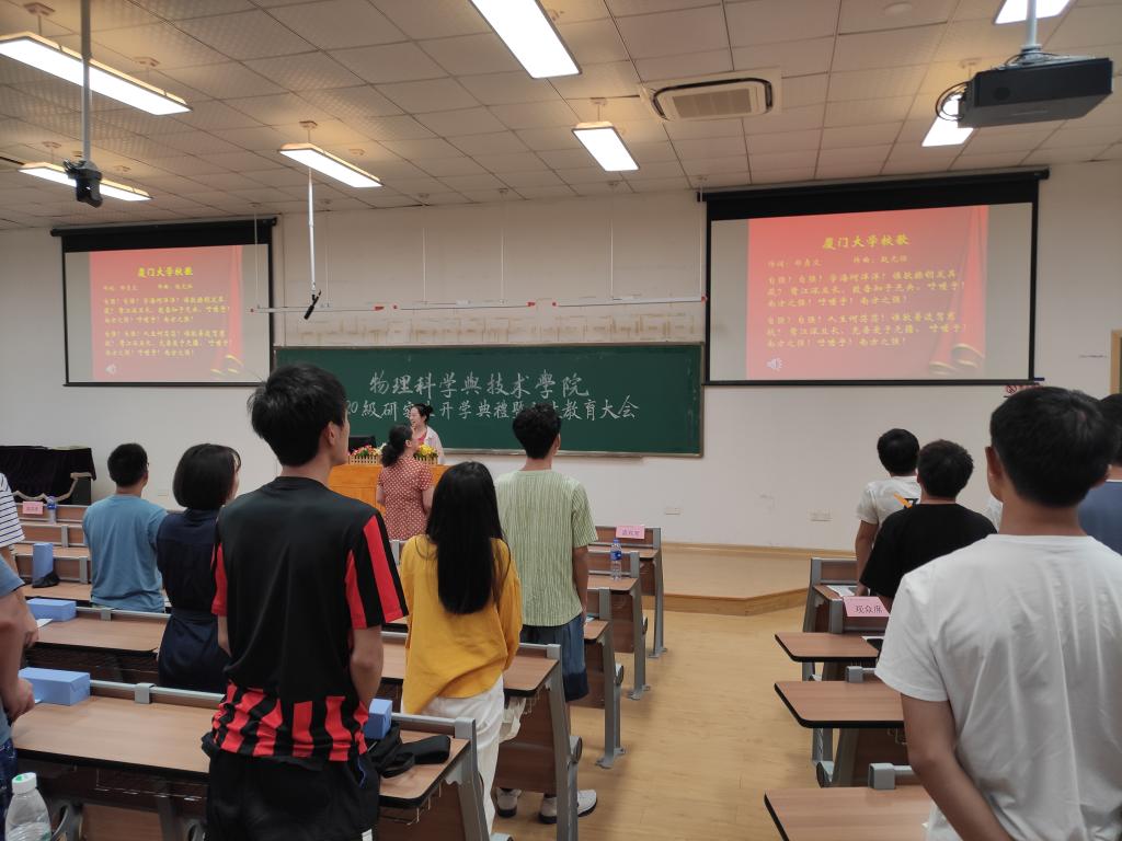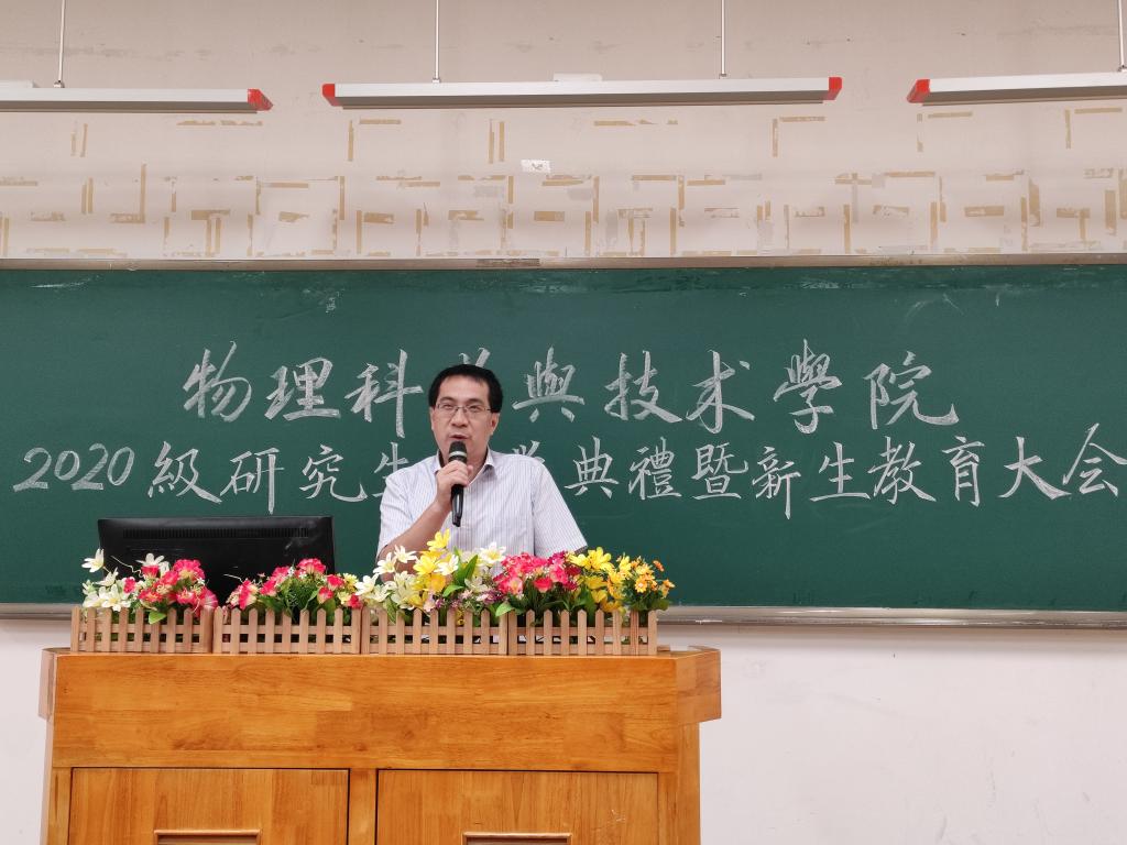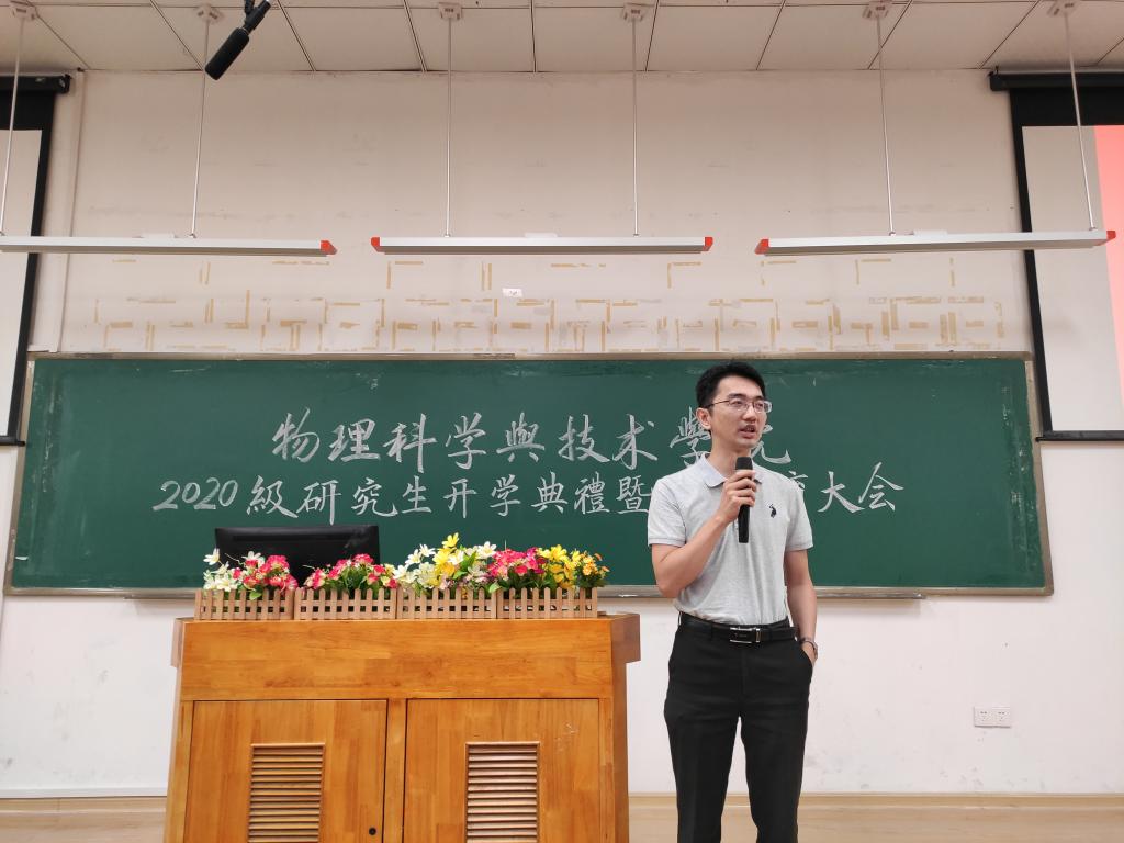 物理系主任吴顺情老师对研究生的科研学习要求提出了建议。他提醒新生要端正自己的心态,适应自己导师的节奏,要积极主动的和导师进行交流。吴老师指出研究生阶段时间宝贵,要有紧迫感,不要忘记自己的科研任务,要抓紧时间做科研。最后,吴老师还对研究生培养的细节问题进行了补充,对大家提出了未来的期望。