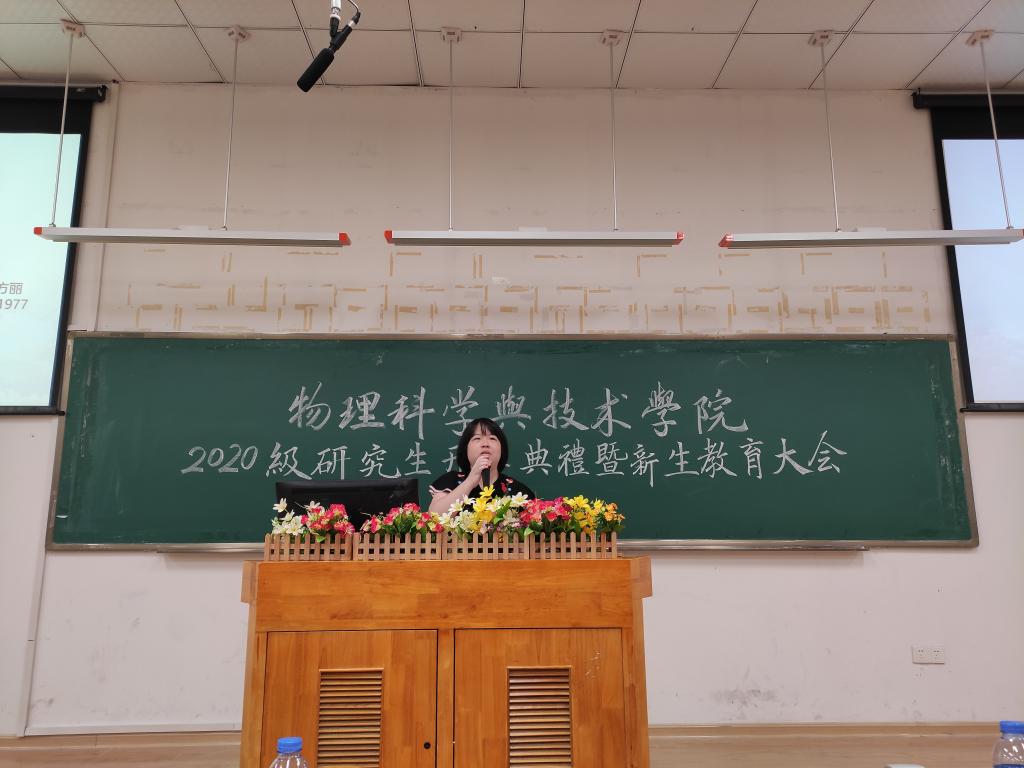 研究生辅导员邱丹文老师主要强调了安全、学业规划等问题。她分别从游泳安全、消防安全、人身安全、财产安全、台风防范、防毒防艾、文明上网等方面进行阐述,通过实例,提醒同学们一定要遵守纪律、注意安全。最后,邱老师也介绍了学院里众多的奖学金,鼓励大家努力学习、不断攀登科研的高峰。
