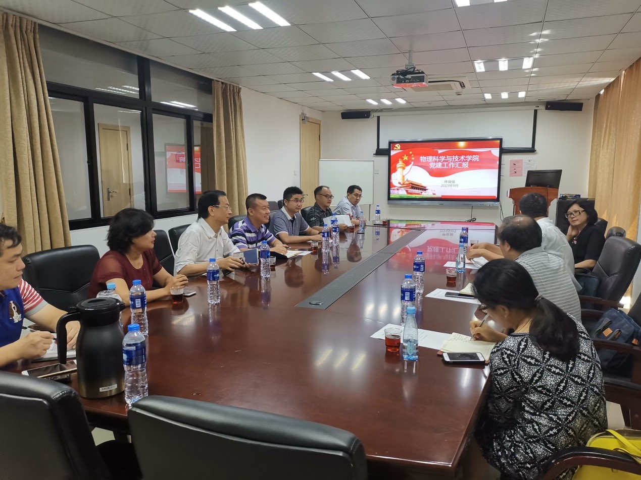 与会领导听完林书记的汇报后,开展了工作交流。他们肯定了学院近几年的党建工作成效,也提出了一些建议。最后,与会校领导一行视察了物理科学与技术学院实验室,并与学院领导展开了亲切的交谈,提出了期望。