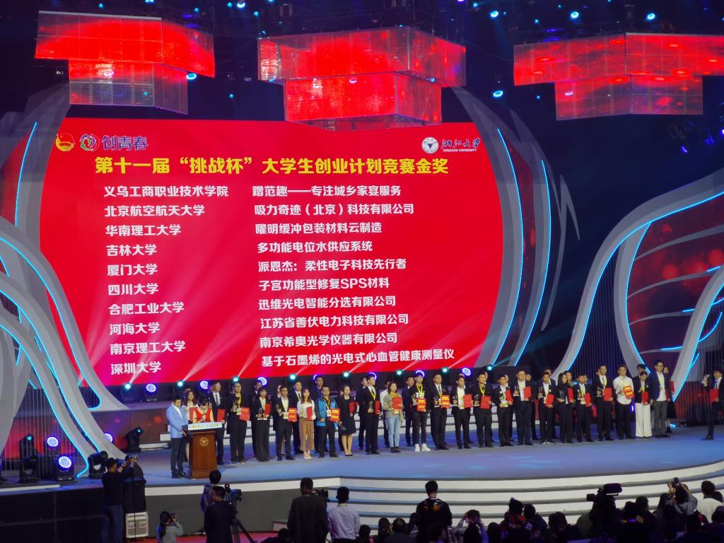 2018年11月1日—3日,由共青团中央、教育部、人力资源和社会保障部、中国科协、全国学联、浙江省人民政府联合主办的2018年“创青春”全国大学生创业大赛决赛在浙江大学举办。经过激烈角逐,由物理科学与技术学院2017级博士生许子颉担任负责人的参赛项目“派恩杰:柔性电子科技先行者”表现优异,继中国“互联网+”大学生创新创业大赛后再创佳绩,为世界杯体彩斩获一项金奖。厦门大学在本次大赛中取得2金3银1铜的优异成绩,总积分位列全国高校第11名、福建省首位,大赛开办以来连续三届捧得大赛“优胜杯”,并获“高校优秀组织奖”。