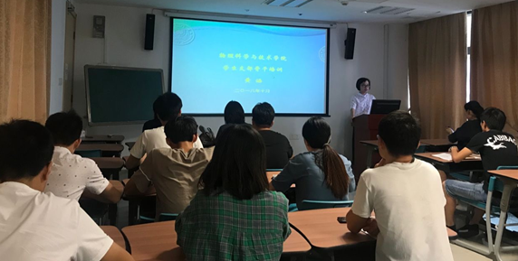 2018年10月10日下午,物理科学与技术学院在物理大楼573室开展学生支部骨干培训。学院党委副书记张秀丽老师、辅导员邱丹文老师以及各学生支部的支委、支书参加了本次培训,学院党务秘书黄涵老师主持培训。