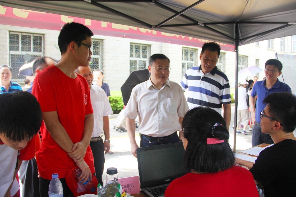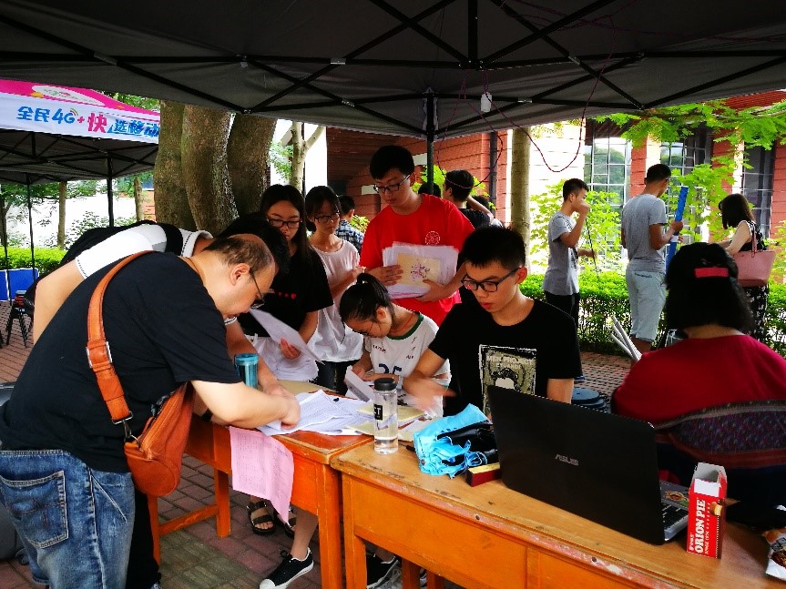 还有学生公寓引导组的志愿者。他们负责最后一道“关卡”——入住手续。尽管酷暑难耐,他们依然坚守着工作岗位,都希望能用自己的力量为新生提供最好的服务。