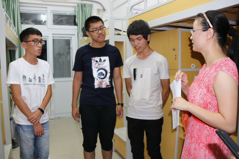 傍晚时分,2017级新生辅导员陈洪老师,一班班主任董新伟老师,二班班主任曹昕睿老师一同前往新生宿舍进行慰问。他们关切地询问了新生的到校时间、宿舍成员到达情况、对新环境的适应情况等等,并赠予学生最诚挚的祝福,期望他们能在厦门大学度过充实而快乐的大学生活。