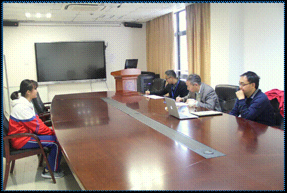 图1 :蔡伟伟教授(左一)、吴晨旭教授(中)、张勇教授(右一)(307面试室)