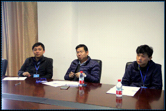 图2: 王俊峰教授(左一)、赵鸿教授(中间)、武剑锋教授(右一)(407面试室)