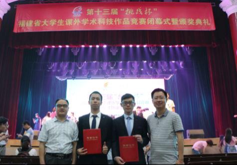 5月20日,由共青团福建省委、福建省科学技术协会、福建省教育厅、福建社会科学院、福建省学生联合会主办的“挑战杯”福建省大学生课外学术科技竞赛决赛在厦门大学举办,75件作品从来自全省39所高校320件作品中脱围而出,进入决赛环节。在5月20日上午的决赛环节中,经过专家的最终评审,评出特等奖11项,一等奖20项,二等奖54项。5月20日晚七点半,第十三届“挑战杯”福建省大学生课外学术科技竞赛闭幕式暨颁奖典礼在厦门大学建南大礼堂隆重举行,厦大党委副书记林东伟等领导参加此次颁奖典礼,为获奖团队颁奖。
