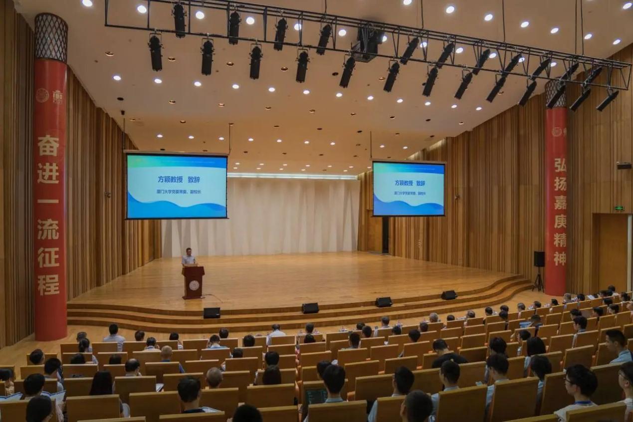 首先,厦门大学党委常委、副校长方颖教授发表开幕致辞,代表主办方对参会嘉宾表示热烈欢迎。方颖教授介绍了厦门大学的校史和厦大物理学科基本情况,他表示厦门大学高度重视此次培训班,在课程设置、师资力量、教学空间等方面做了精心的安排。活动也为物理学拔尖创新人才提供了宝贵的交流机会,他期待与会专家教授共同研究交流物理拔尖卓越人才培养方式,共同为提升高校物理教学质量贡献智慧与力量。