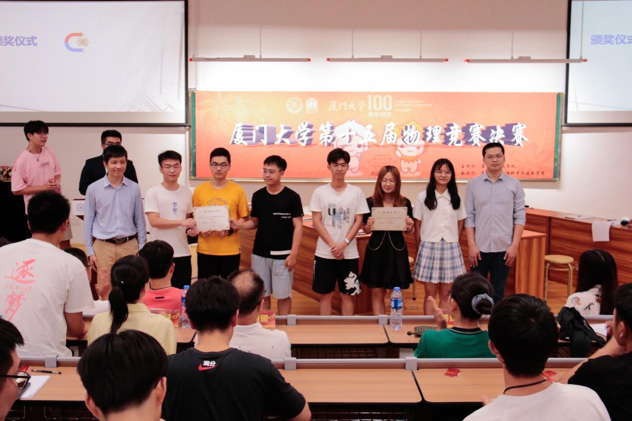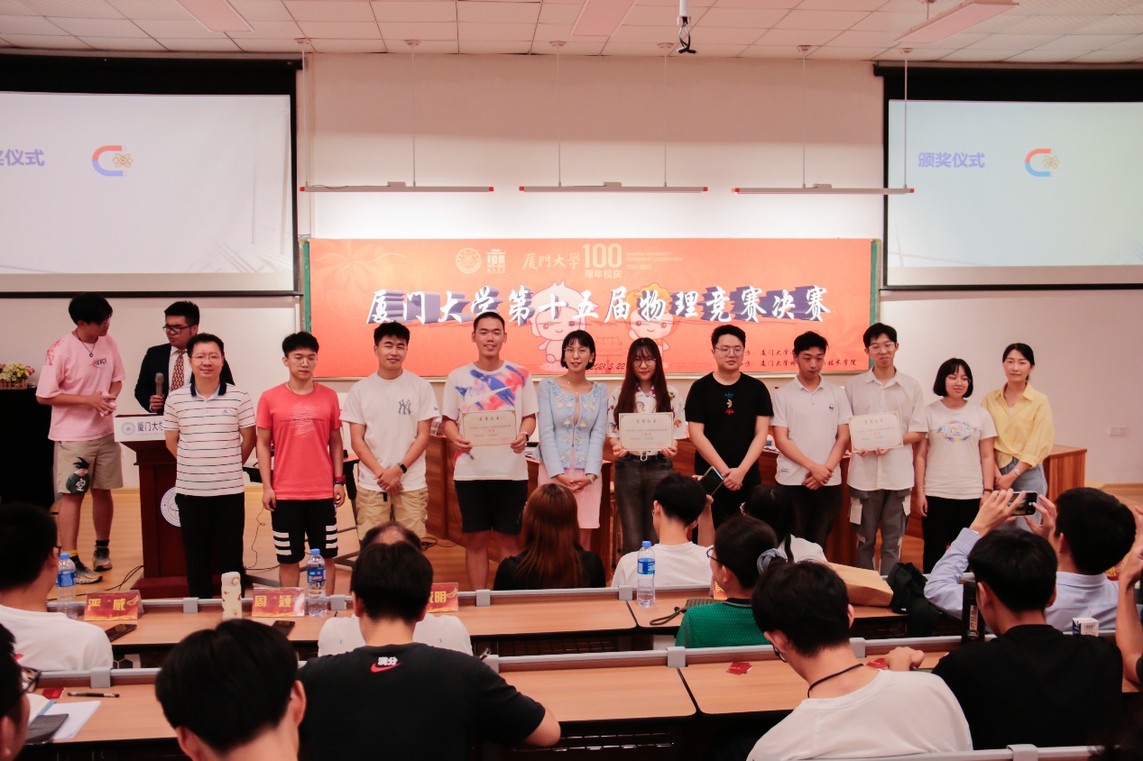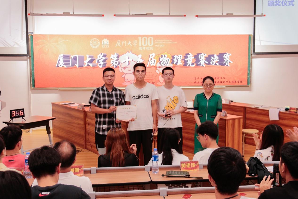 为了倡导对基础学科的重视,激发同学们学习物理的兴趣,由教务处主办,物理科学与技术学院承办的第十五届物理竞赛(XMUPC15)总决赛于2021年5月22日晚上在物理大楼117报告厅顺利举行。比赛有超过200名学生线下观摩,同时也在bilibili平台直播,赛事引起了同学们广泛关注。现场观众为选手的精彩表现欢呼不断,气氛热烈、情绪高昂,