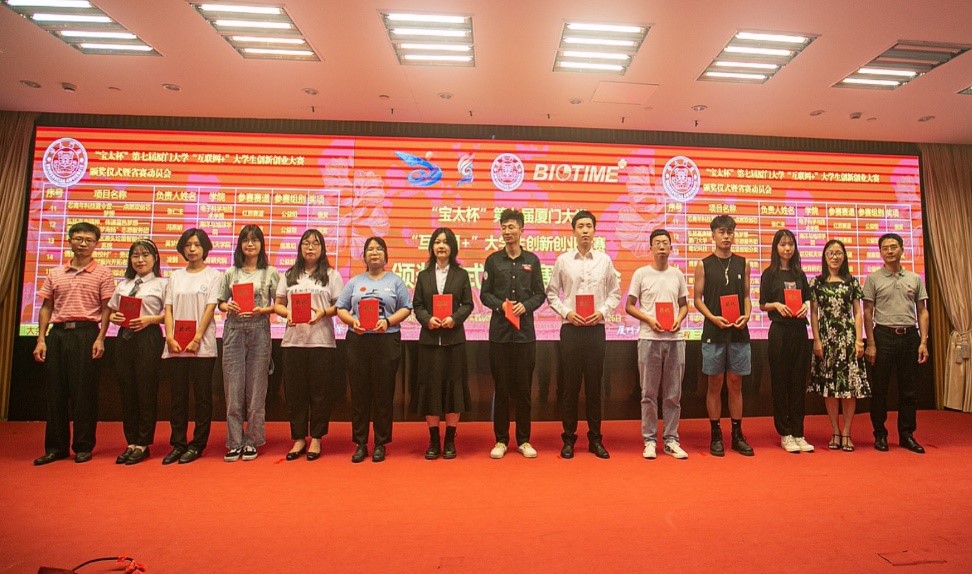 为全面落实习近平总书记给中国“互联网+”大学生创新创业大赛“青年红色筑梦之旅”大学生回信重要精神,深入推进大众创业万众创新,推动高等教育高质量发展,加快培养创新创业人才,“宝太杯”第七届厦门大学“互联网+”大学生创新创业大赛决赛项目答辩暨路演展示于2021年6月26日上午拉开帷幕。物理科学与技术学院共有12个项目参与了校赛,其中6个项目进入决赛。最终主赛道和红旅赛道共获得了3金3银5铜的骄人成绩。学院同时还荣获了大赛先进集体的称号。6月26下午,学校举办了第七届厦门大学“互联网+”大学生创新创业大赛颁奖仪式暨省赛动员会,世界杯(中国)党委副书记郑诚明、学院科创秘书戴朝晖老师和各获奖项目代表参加了颁奖仪式,郑诚明副书记代表学院上台领取大赛先进集体奖。