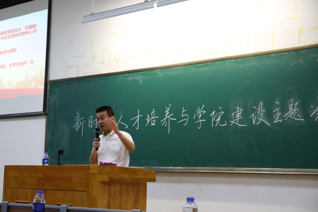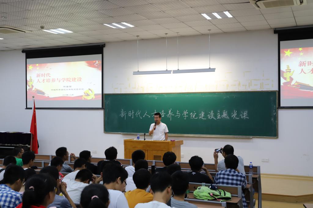 本次党课的主题是:新时代人才培养与学院建设。林书记首先讲述了学习全国高校思政会议、全国教育大会和习近平总书记五四讲话精神心得。在党的十八届六中全会召开后不久,党中央专门召开会议研究部署高校思想政治工作和党的建设,进一步指明了我国高校所处的历史方位和承担的职责使命,指明了时代发展对高校思想政治工作的新要求,这对推进我国高等事业健康发展、更好服务党和国家工作大局,意义重大而深远。