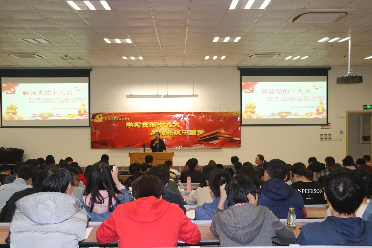 本次党课是《学习贯彻党的十九大,同心共筑中国梦》,内容非常丰富,张秀丽副书记根据中共厦门大学委员会关于认真学习宣传贯彻党的十九大精神的通知来展开的:从充分认识学习宣传贯彻党的十九大精神的重大意义、准确领会把握党的十九大精神的思想精髓和核心要义、全面贯彻落实党的十九大精神以及开创校院各项事业发展新局面,结合学院“双一流”学科建设和基层支部组织建设等,提出了世界杯(中国)研究生党员和支部在开展党的十九大学习活动中,按照通知要求,加强领导,精心组织,推动学习宣传贯彻工作的扎实深入开展。