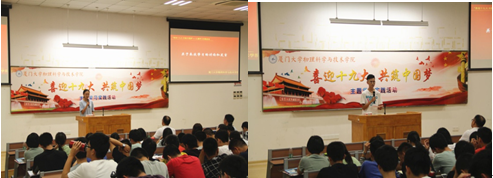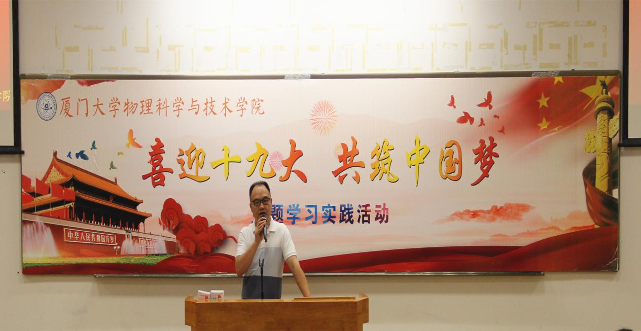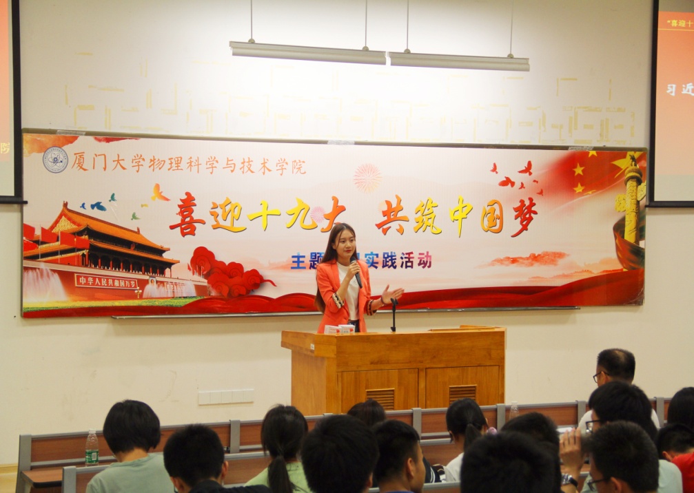 10月16日晚七点,物理科学与技术学院本科生“喜迎十九大,共筑中国梦”第二场主题学习实践活动在物理大楼117报告厅举行。世界杯(中国)党委副书记郑诚明老师、团委副书记陈洪老师、兼职辅导员郑美颖以及2016级全体本科生参加了此次学习活动。