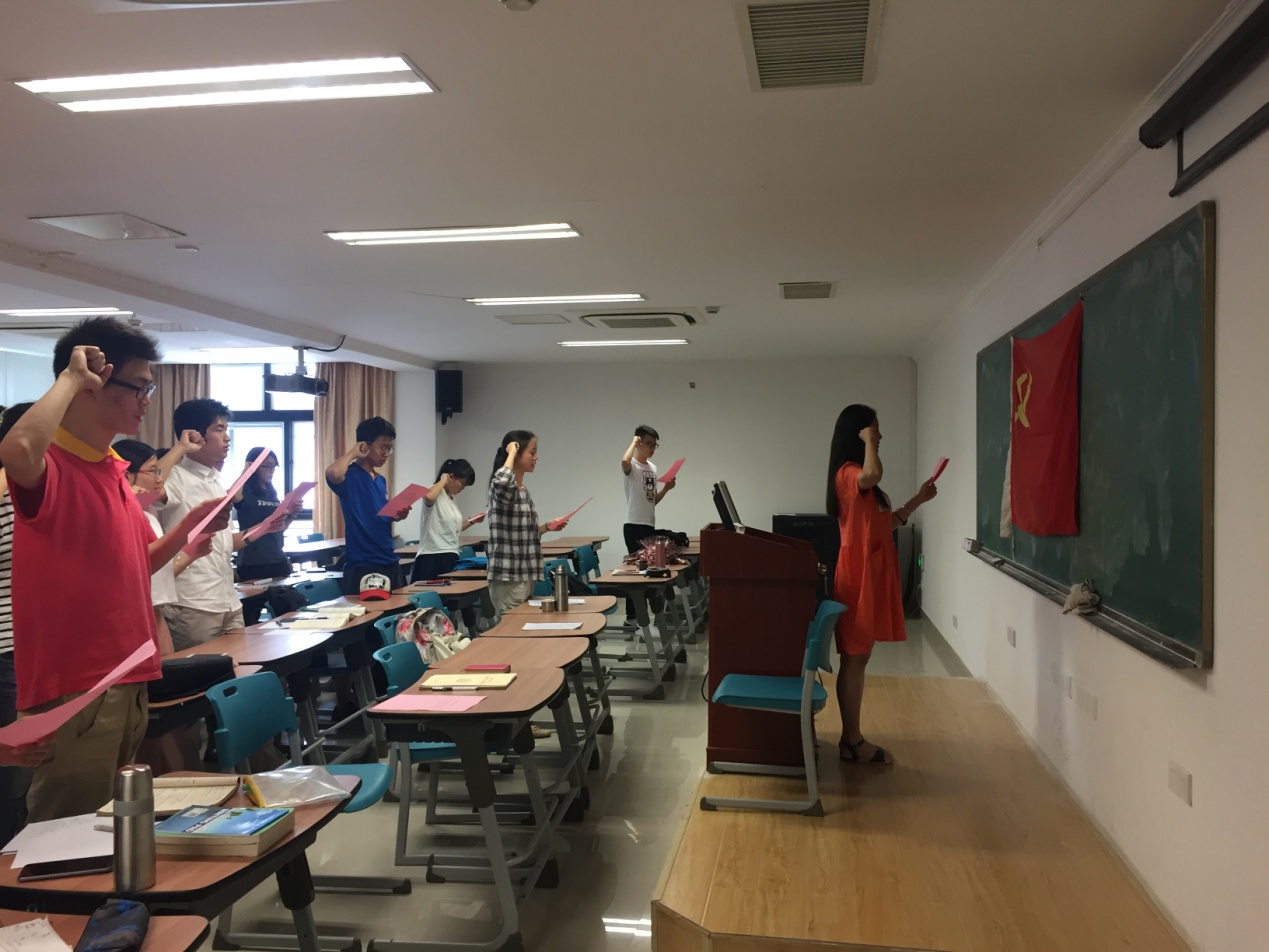 2017年5月10日,入党宣誓仪式暨习近平总书记系列重要讲话学习交流会在物理大楼552举行,世界杯(中国)辅导员邱丹文老师及学院2014、2015级本科生党支部全体成员参与了本次活动。