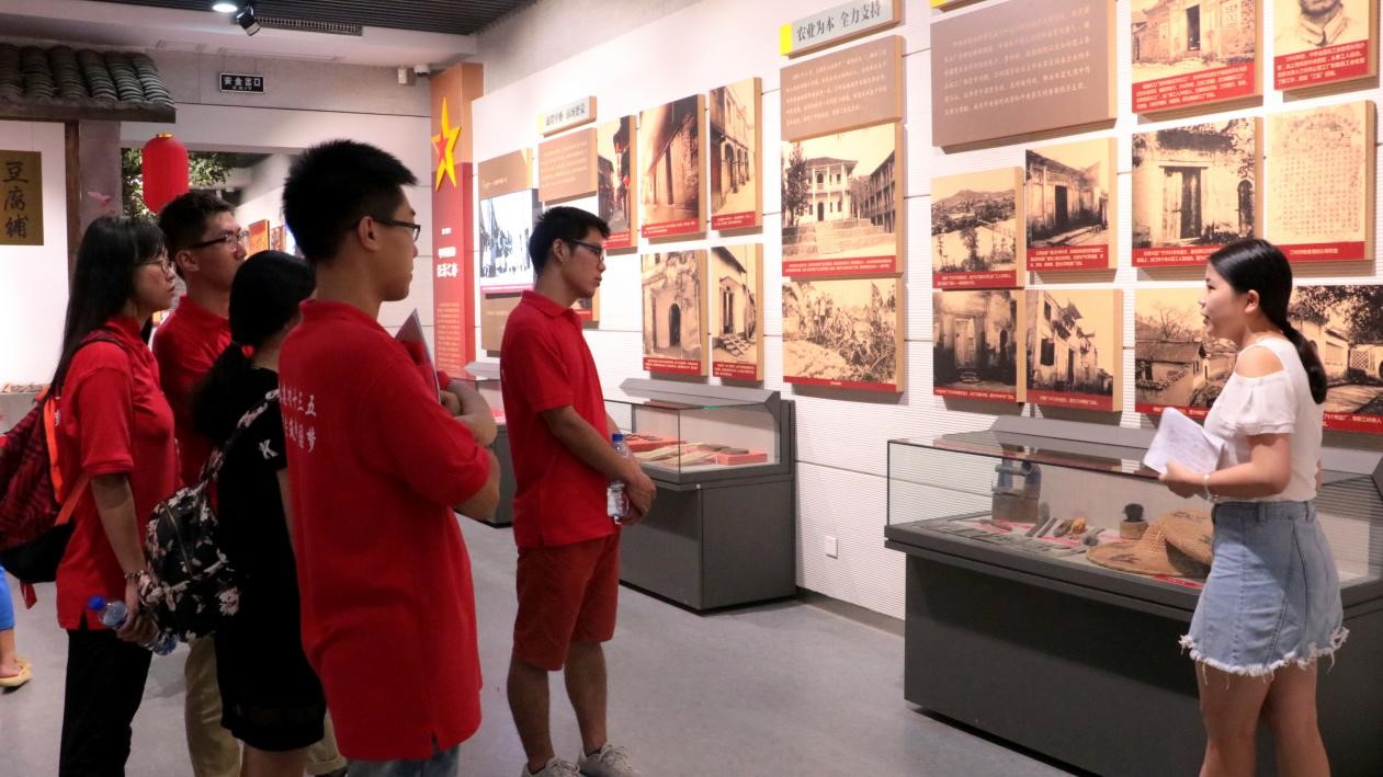 7月29日,实践队到达长汀县城,参观了瞿秋白烈士纪念碑、长汀县博物馆、福音医院等革命旧址。在博物馆中,队员们细细观摩着展出的图文,一张张古朴又真实的老照片,一件件泛黄又饱含历史的枪支、斗笠,无一不展现出当年军民一心、热火朝天的抗战图景。长汀县是中央苏区的主要组成部分,毛泽东、周恩来、刘少奇等老一辈无产阶级革命家都曾在这里组织革命斗争,留下了光辉的足迹。长汀县作为中国革命的转折之城,红军在此壮大,使得长汀成为红军故乡。