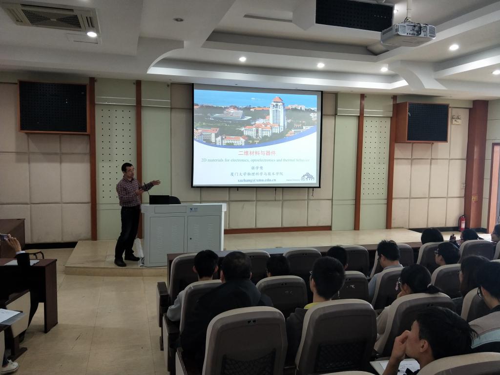 2019年3月15日下午,厦门大学物理科学与技术学院张学骜教授在海韵教学楼504学术报告厅以“二维材料与器件”为题,为大家带来了一场精彩的前沿学术讲座。报告会由吴顺情教授主持,物理科学与技术学院相关师生参加了此次报告会。