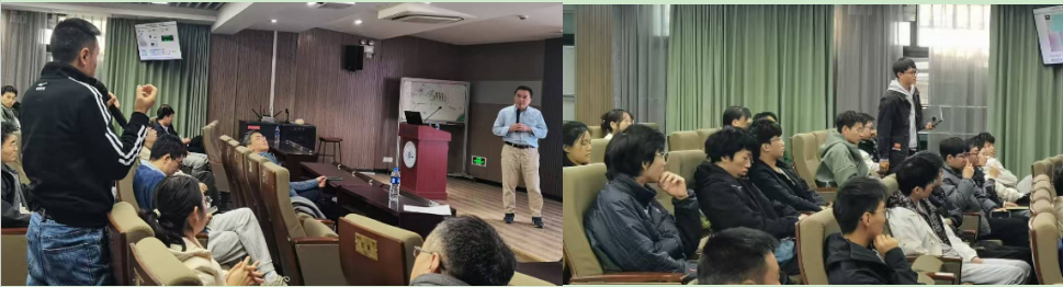 报告现场气氛活跃。师生围绕报告中提到微化工技术的应用以及超低损耗与超大规模薄膜铌酸锂光子芯片制造等相关话题与程亚教授进行了热烈的交流与讨论。
