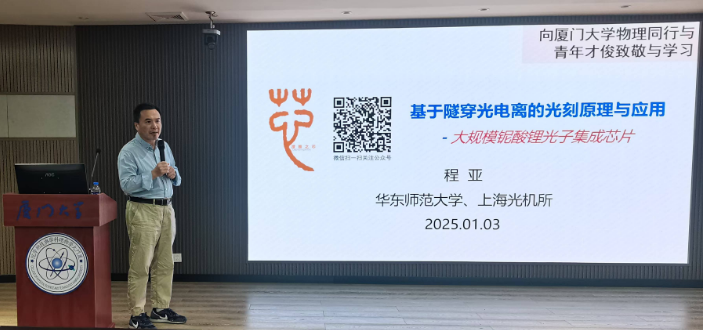 2025年1月3日,华东师范大学物理与电子科学学院院长、中科院上海光机所程亚教授应邀在厦门大学海韵园物理大楼552报告厅作了主题为“大规模低损耗铌酸锂集成光子技术”的讲座(萨本栋系列讲坛第191讲)。讲坛由物理科学与技术学院副院长陈理想教授主持。