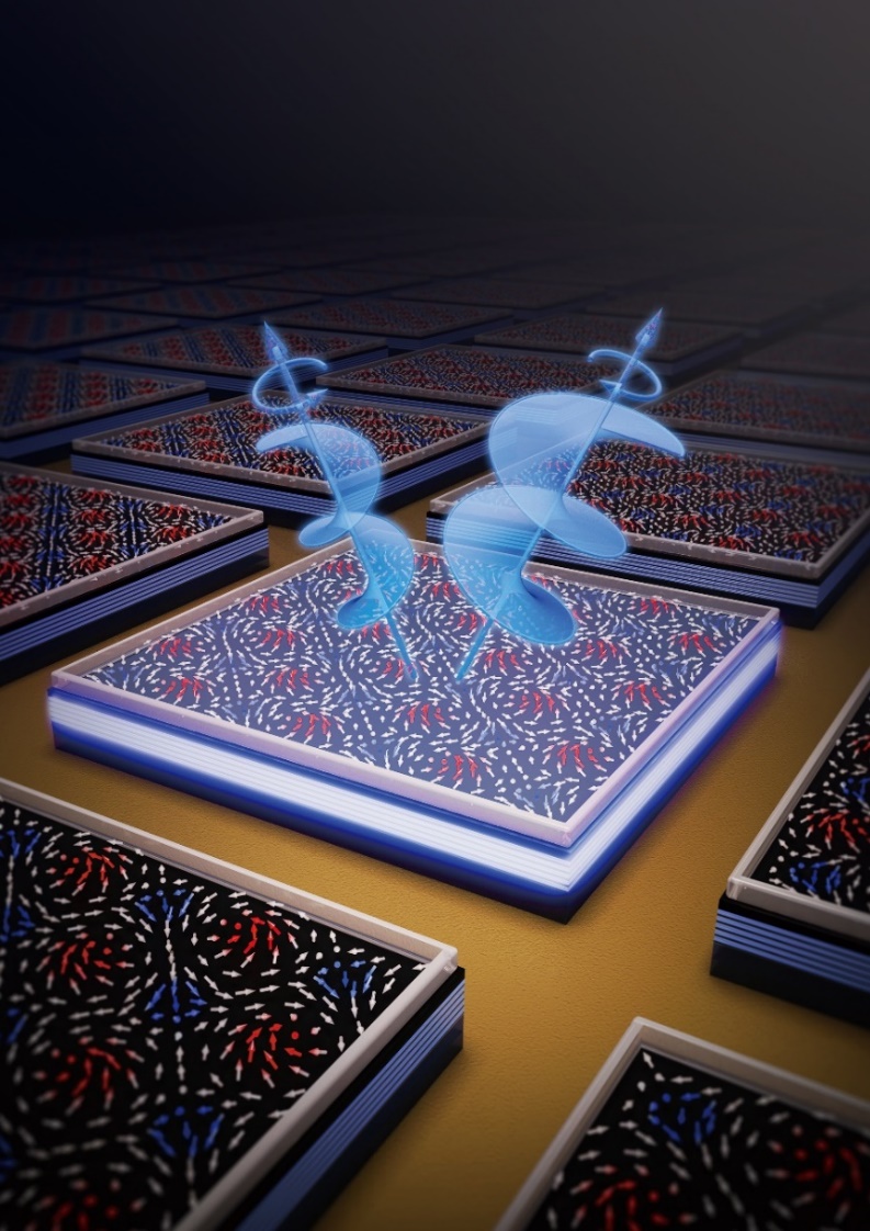 团队经过理论与实验的深入研究,发现当电子注入Meron晶格时,其输运轨道可受到有效调控,进而产生自旋极化。在此基础上,团队进一步将自旋极化电流注入量子阱中,完成了从拓扑保护的准粒子到电子再到光子的手性传递,实现了高效的自旋光发射。该新型拓扑自旋固态光源芯片有望满足未来量子信息等技术的发展需求。