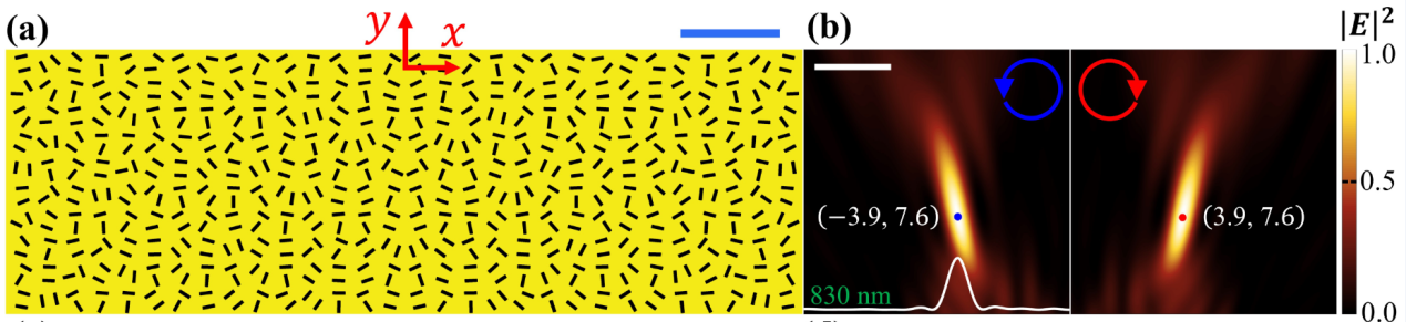Fig.1 (a)超表面结构;(b)自旋态调控表面等离激元聚焦。