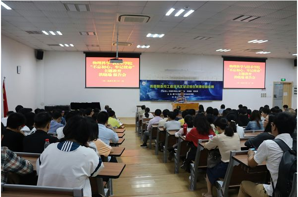 洪晓瑜学长介绍了对中国探月历程的艰辛故事。从嫦娥一号、嫦娥二号和嫦娥三号到嫦娥四号,这里面所蕴含的汗水和付出实难想象,在场师生们都深受感动。
