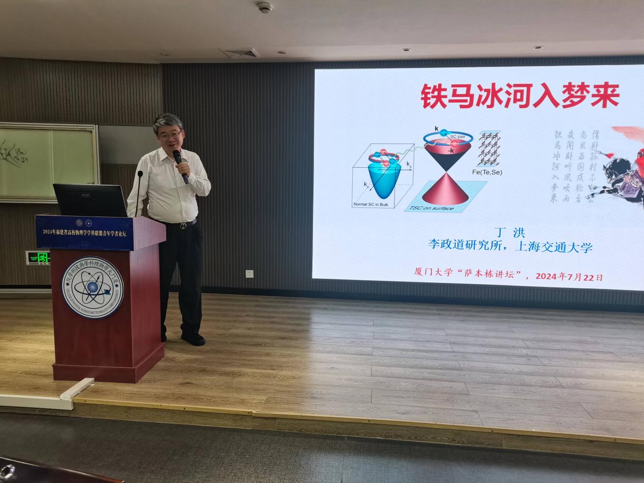 2024年7月22日下午,由厦门大学物理科学与技术学院主办的“萨本栋讲坛”(总第175期)在海韵园物理楼552报告厅举行,中国科学院院士、上海交通大学李政道研究所讲席教授丁洪院士应邀作了主题为“铁马冰河入梦来”。本次讲坛由厦门大学物理科学与技术学院副院长吴顺情教授主持。吴顺情教授主持1937年意大利物理学家马约拉纳预言了马约拉纳费米子,其正粒子完全等同反粒子。而马约拉纳任意子是一种只存在于两维空间的更为特殊粒子...