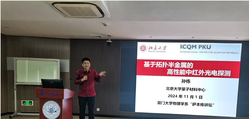 孙栋教授作“基于拓扑半金属的高性能中红外光电探测”学术讲座2024年11月1日,北京大学物理学院量子材料中心的孙栋教授应邀在海韵校区物理楼552报告厅作了主题为“基于拓扑半金属的高性能中红外光电探测”的萨本栋系列讲坛第181讲。本次讲坛由厦门大学物理科学与技术学院院长陈张海教授主持。陈张海教授主持 高性能的光电探测器广泛应用于人们的日常生活,是各种电子设备的“眼睛”。可见光和近红外光电探测器因为成熟的第一...