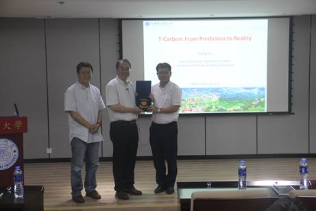 2018-09-26统计物理及其交叉学科支部参加苏刚教授报告会组织生活会 2018年9月21日,统计物理及其交叉学科支部全体党员参加了苏刚教授题为 “T-carbon: From prediction to reality” 的学术报告,会议中苏教授详细介绍了T型碳(T-carbon)的结构、特性、合成以及潜在应用。而且苏教授强调T型碳的出现对于光催化、吸收、能量储存、天文、航天、合成材料等领域都会有极大的促进。 随后党...