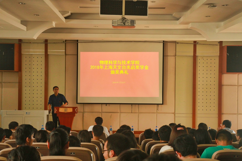 2018年4月23日,物理科学与技术学院2018年上海天文台光启奖学金颁奖典礼在厦门大学海韵园教学楼504报告厅举行。上海天文台台长沈志强与上海天文台人事处处长于申莅临厦门大学海韵园,与学院书记林奋强、学院院...